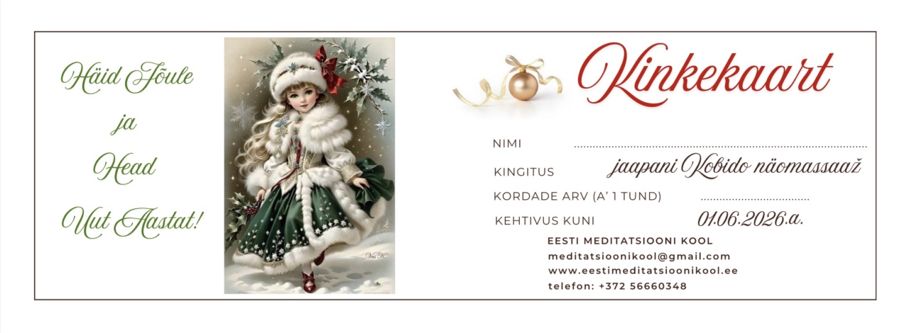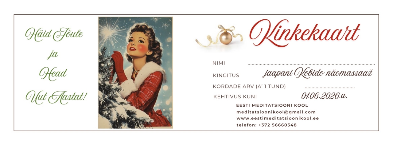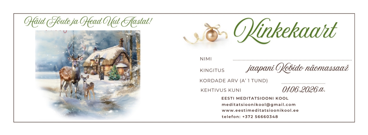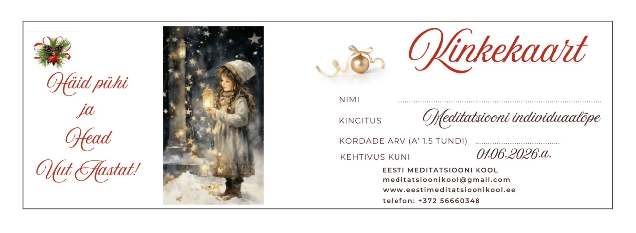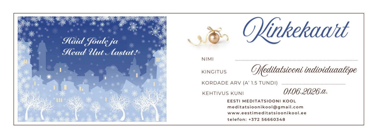Võta meiega kindlasti ühendust, aitame Sul rõõmuga teha oma kallile inimesele üllatust: meditatsioonikool@gmail.com