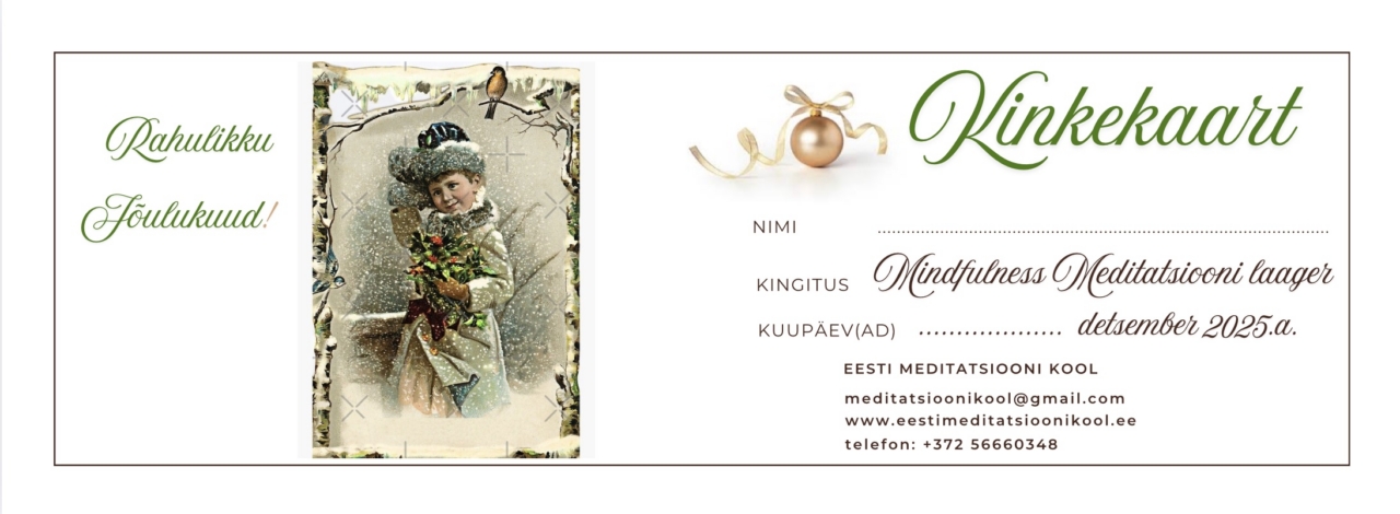 Mindfulness meditatsiooni jõululaagri kinkekaardid