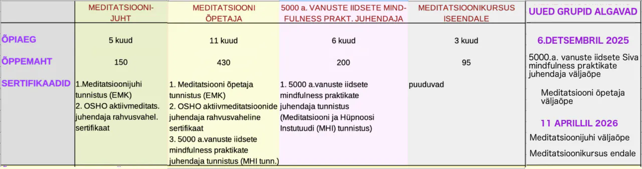 Meditatsioonijuhi väljaõpe / 5 kuud
